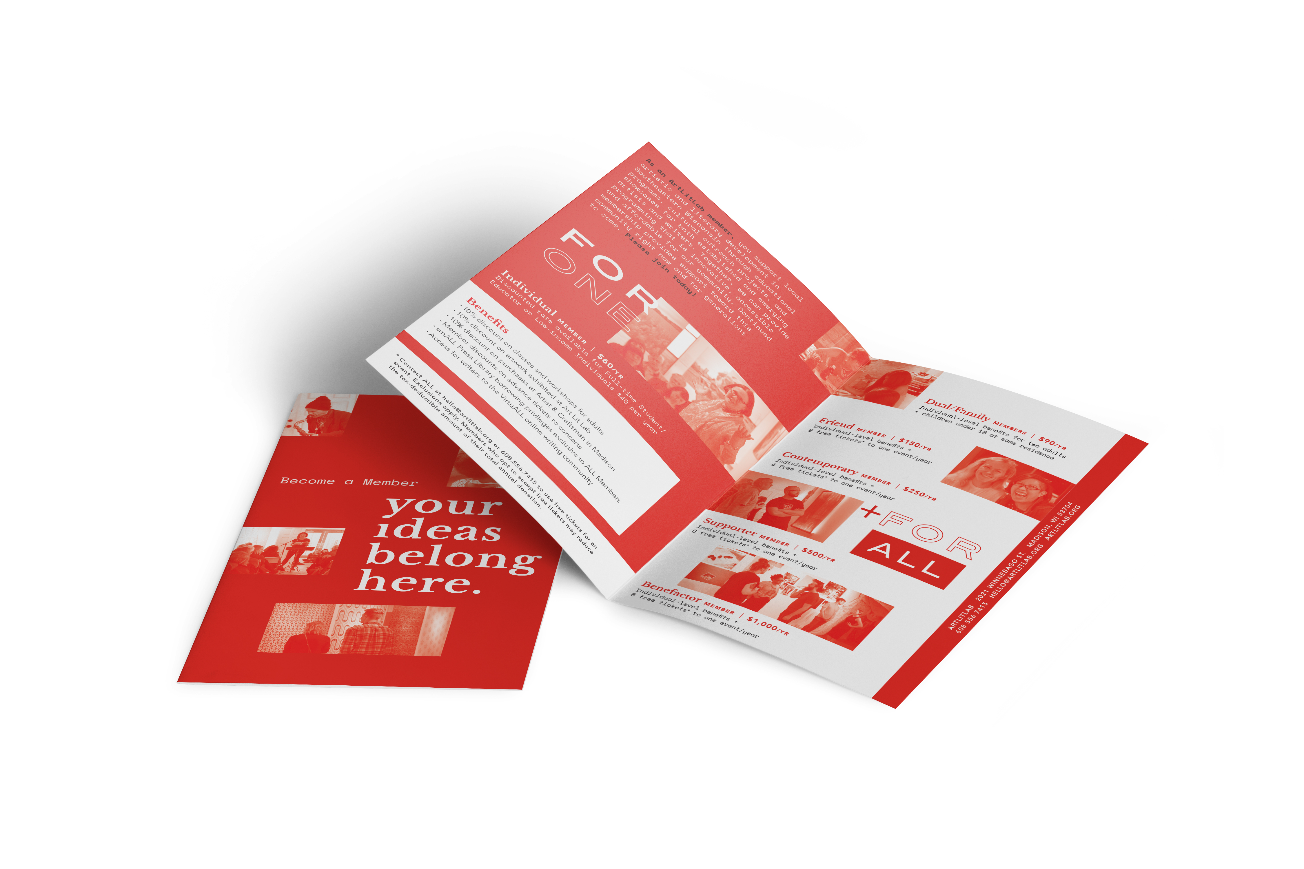 Concept and design for ALL Member recruitment materials, Youth Art prgramming brochure,